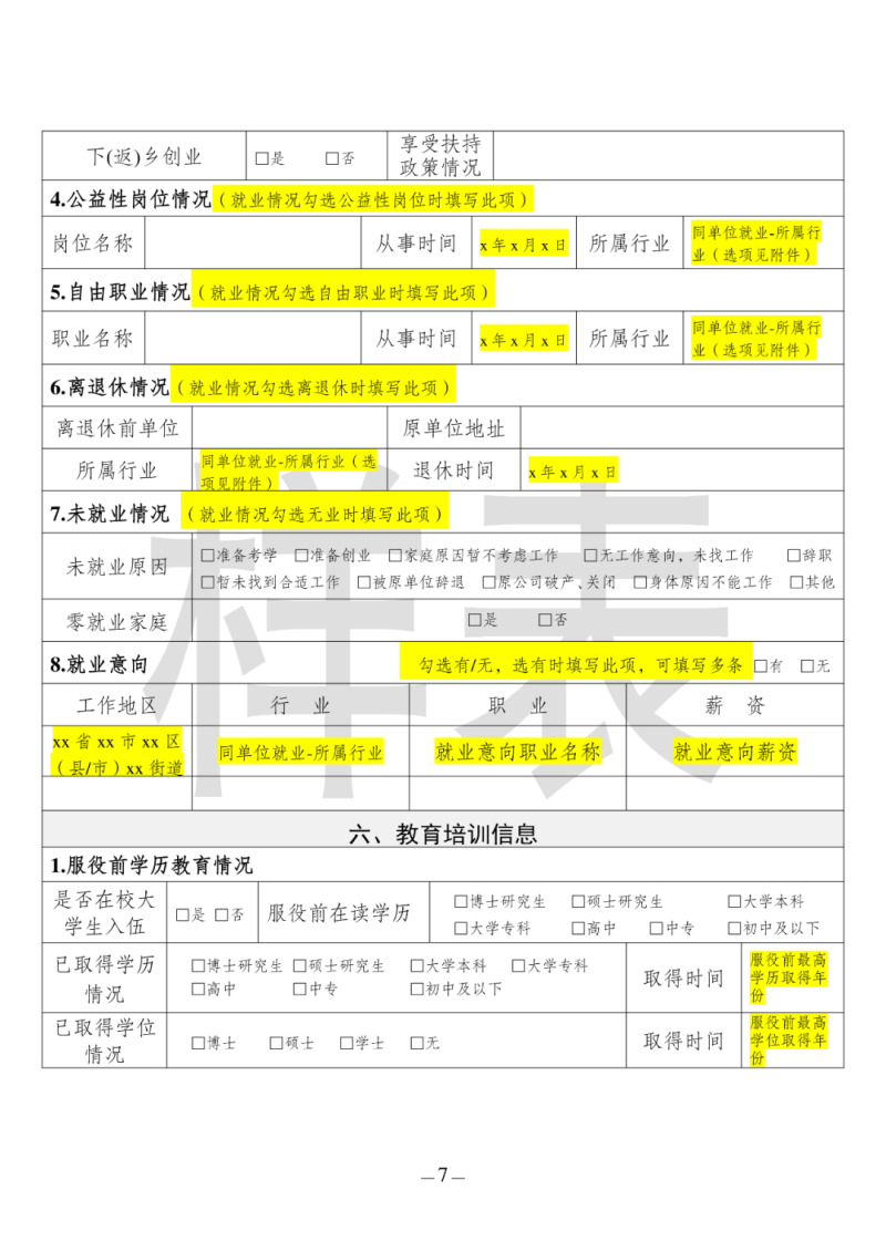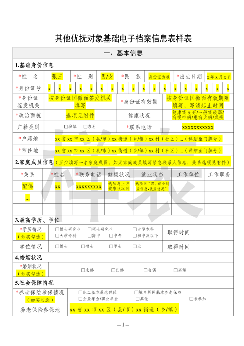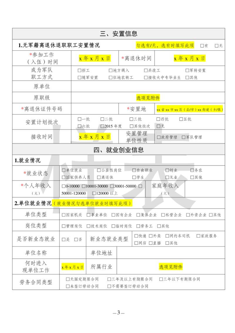退役军人基础电子档案信息表