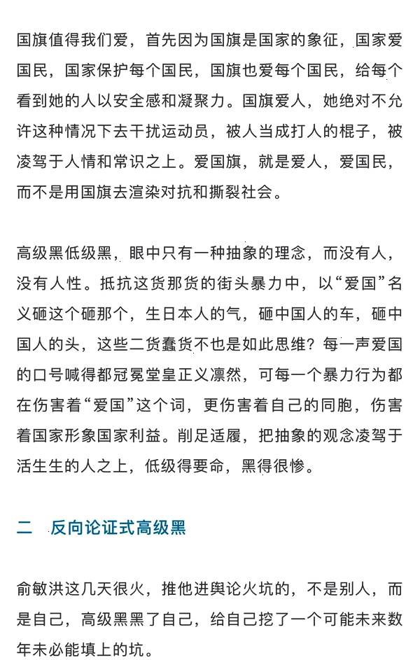 高级黑和低级红,说到底是逻辑问题,缺乏逻辑,没有论证能力,就很容易被这些节奏带偏,走向反面。